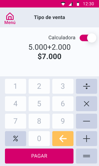 Cuando tengas los montos sumados, al presionar el botón igual (=) se activa el botón PAGAR.